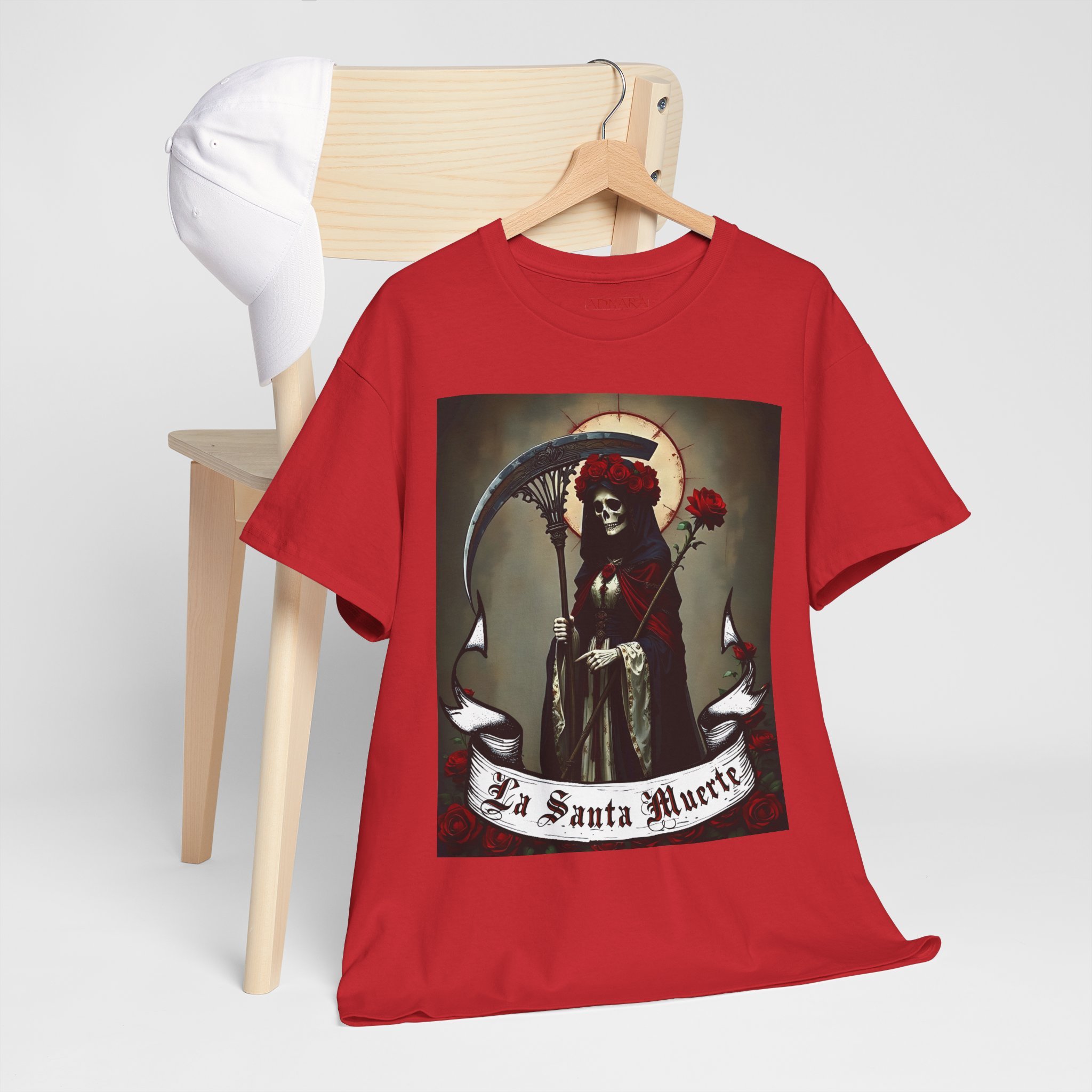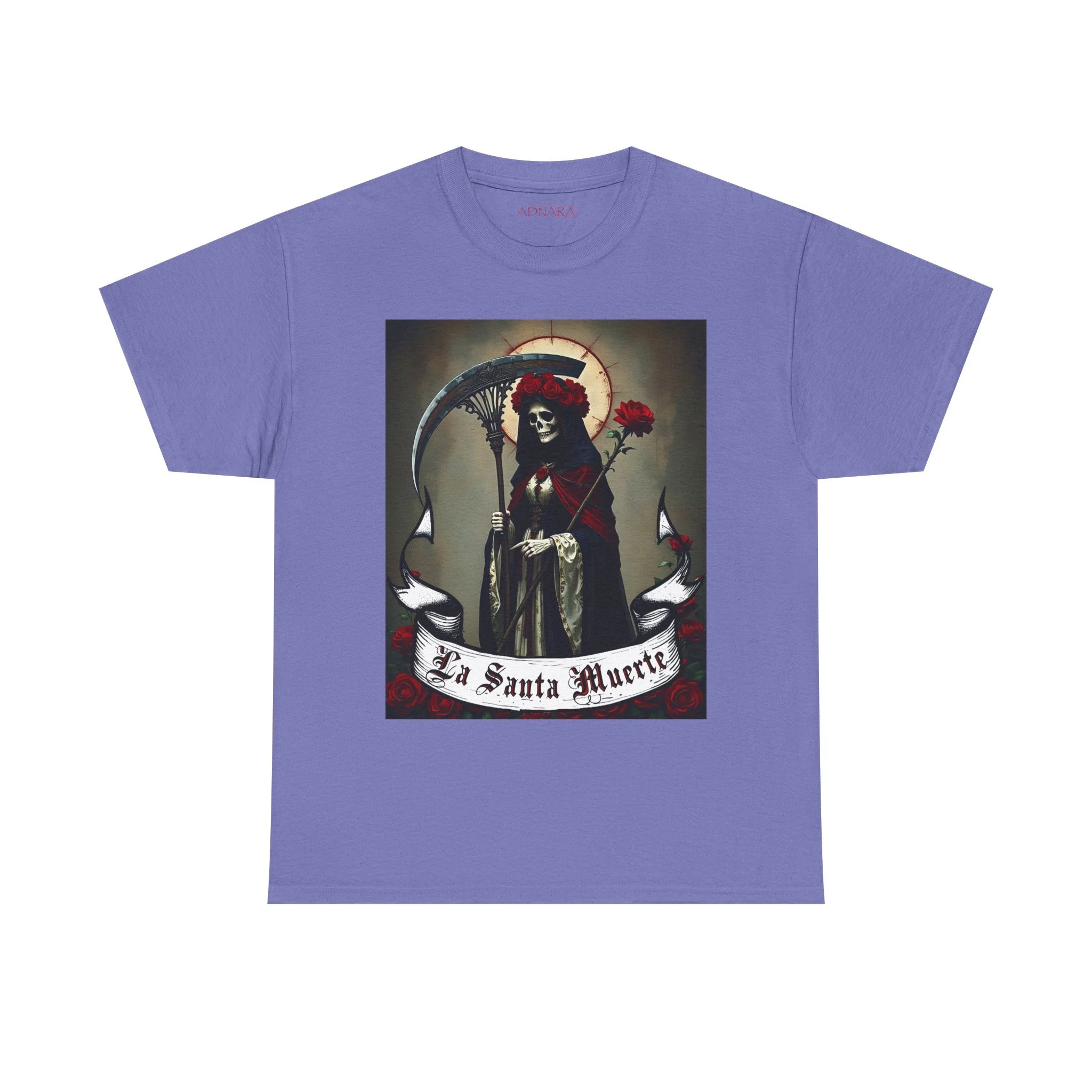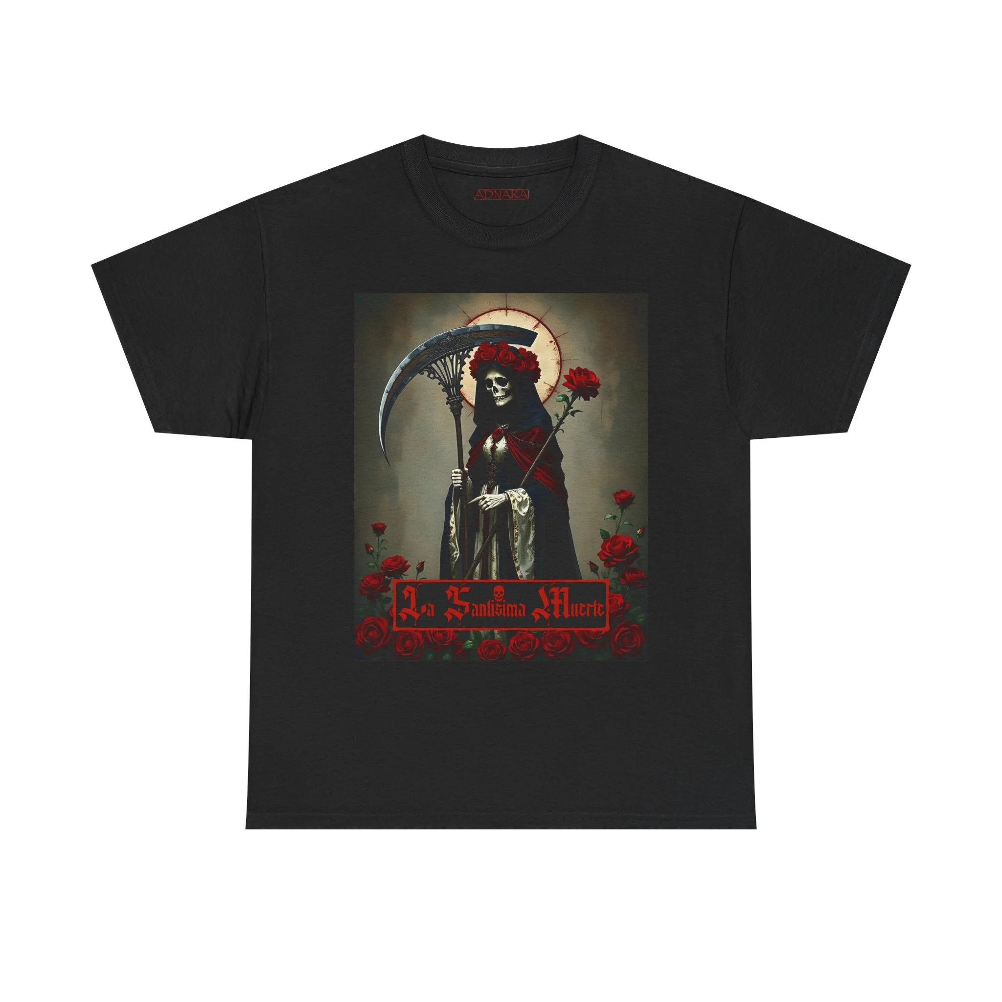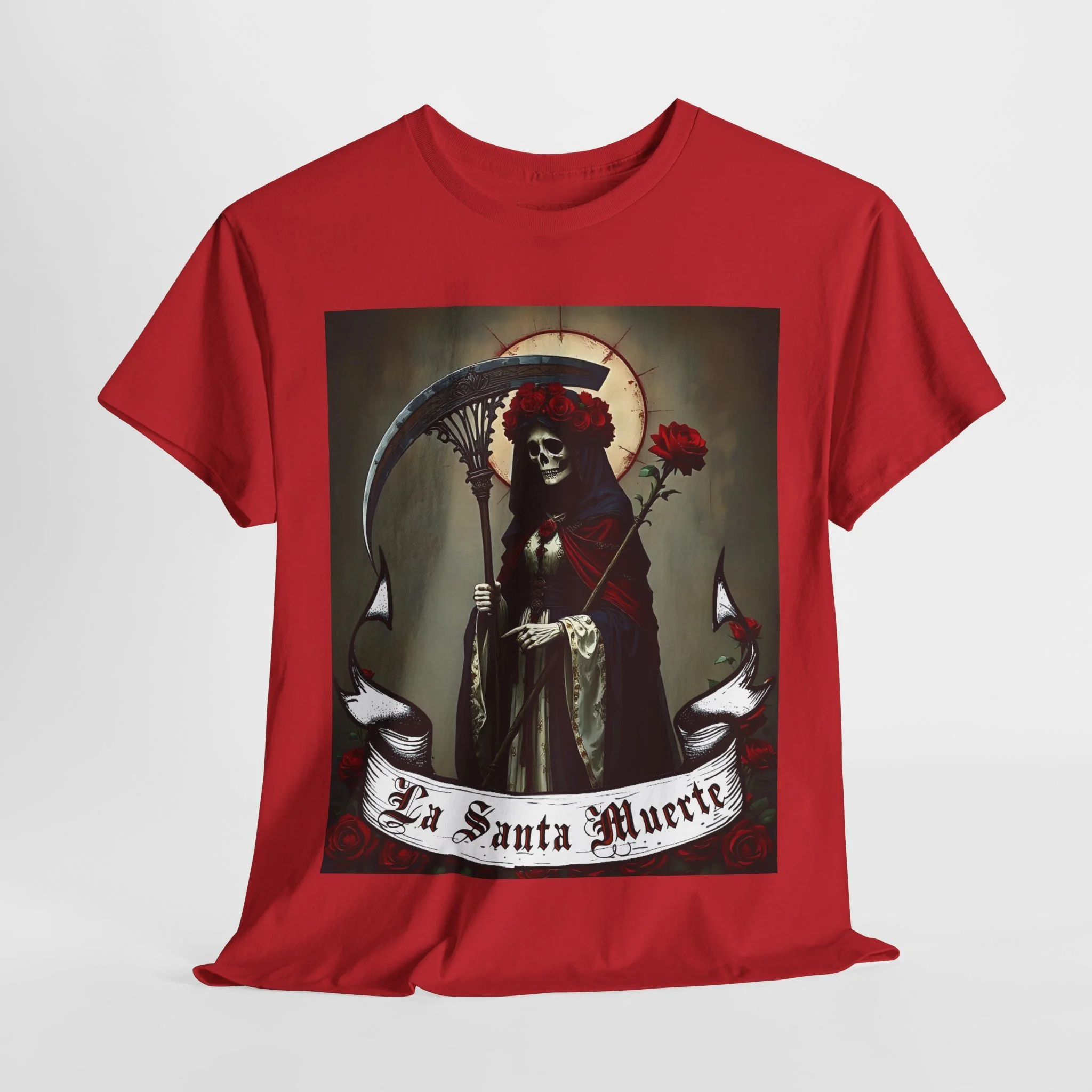 Te presentamos la prenda esencial para devotos, buscadores espirituales y creyentes en los misterios de la vida y la muerte. Nuestra Playera Unisex de Algodón Pesado de La Santa Muerte es más que una camisa – es una declaración de fe, protección y poder que llevas contigo a donde vayas.