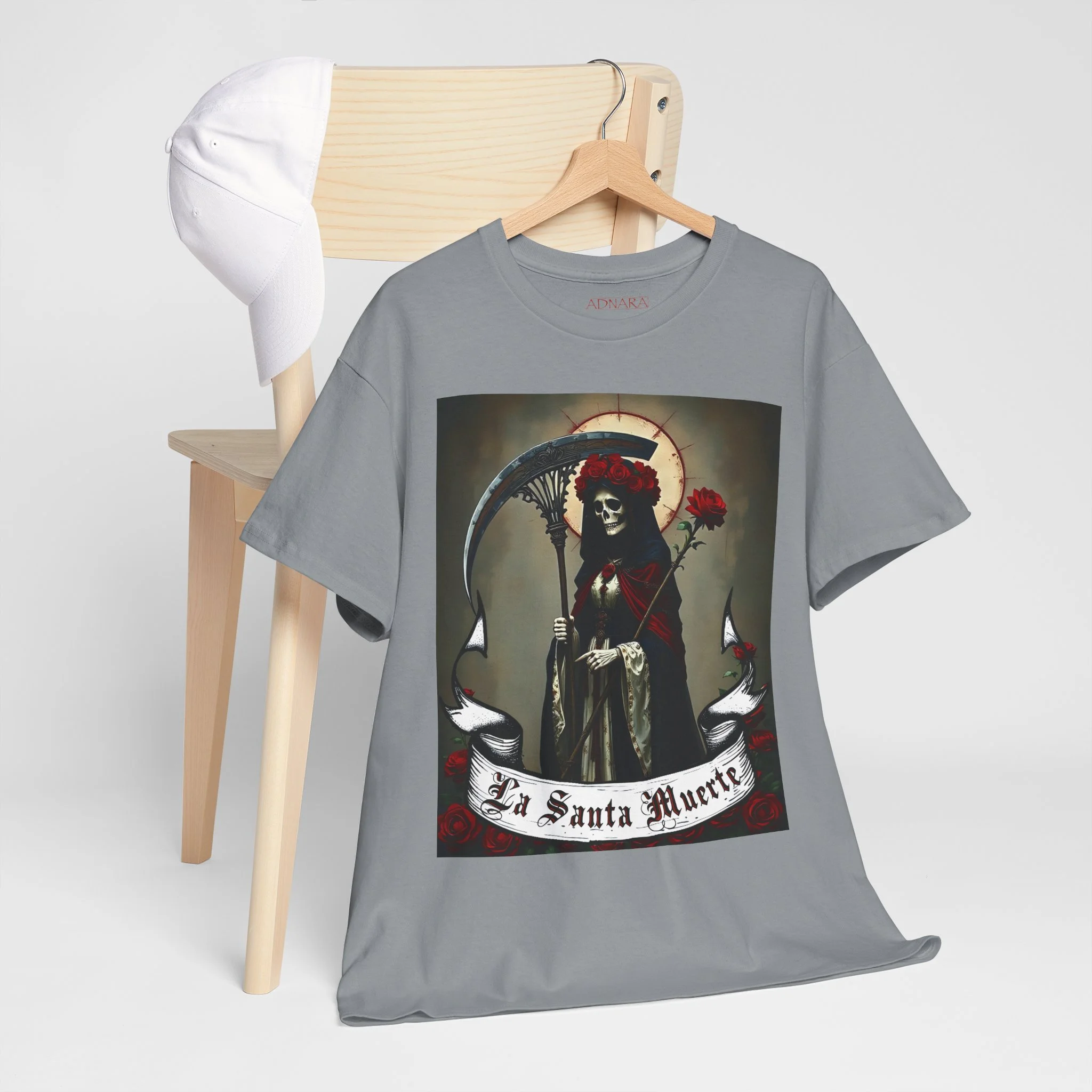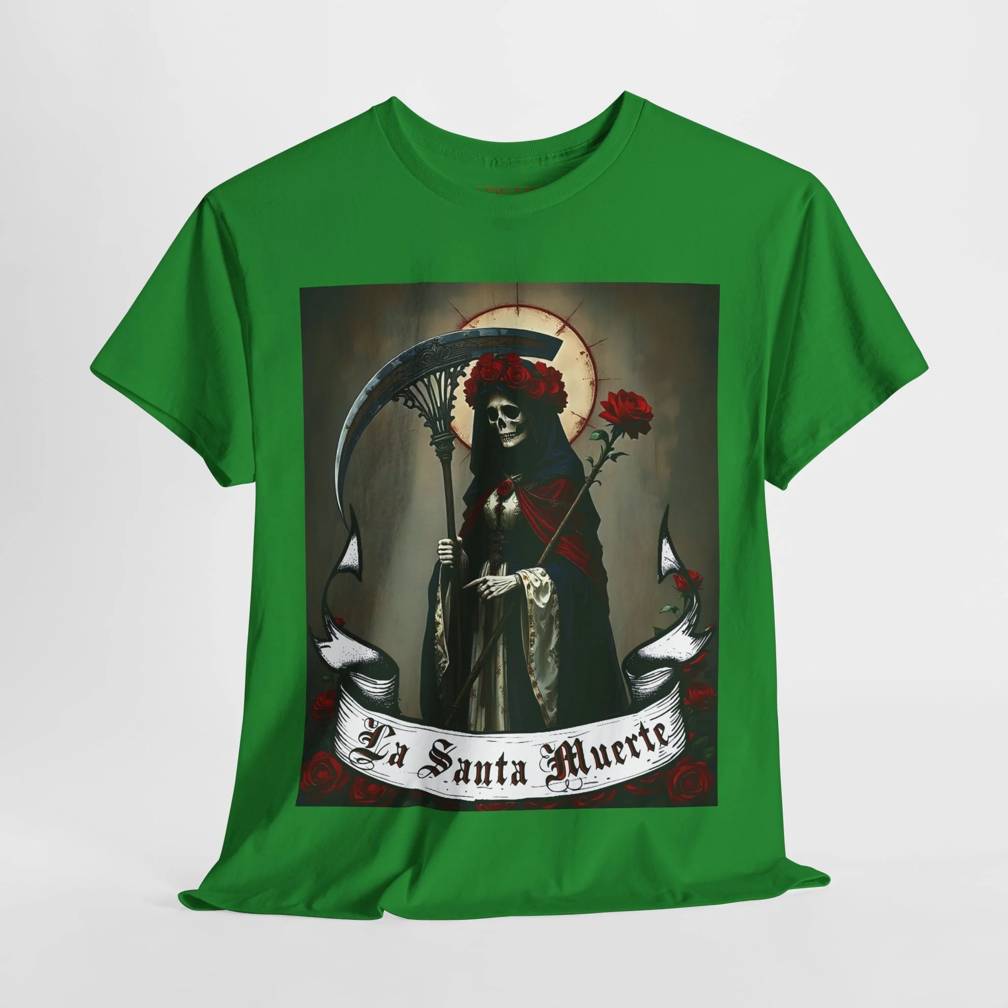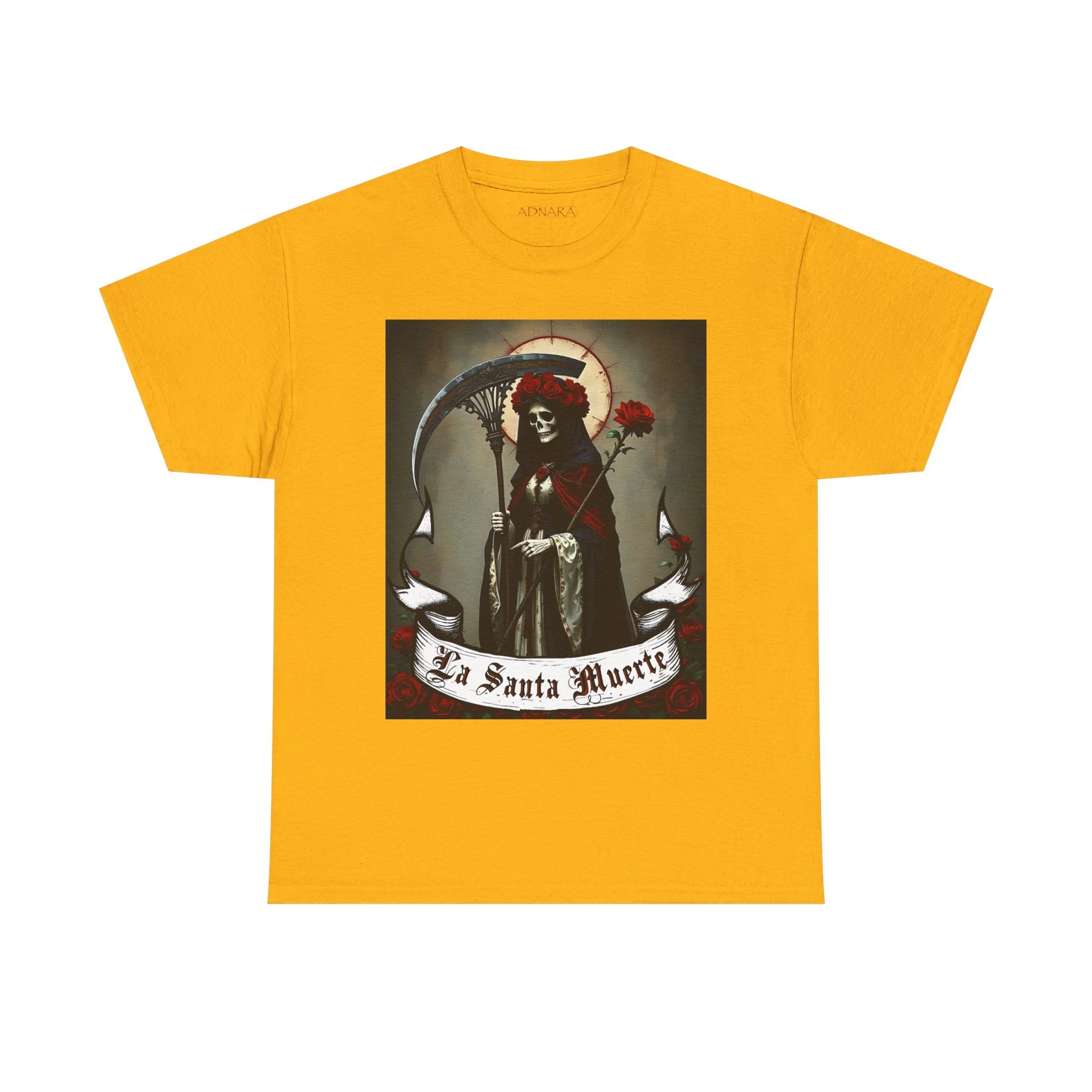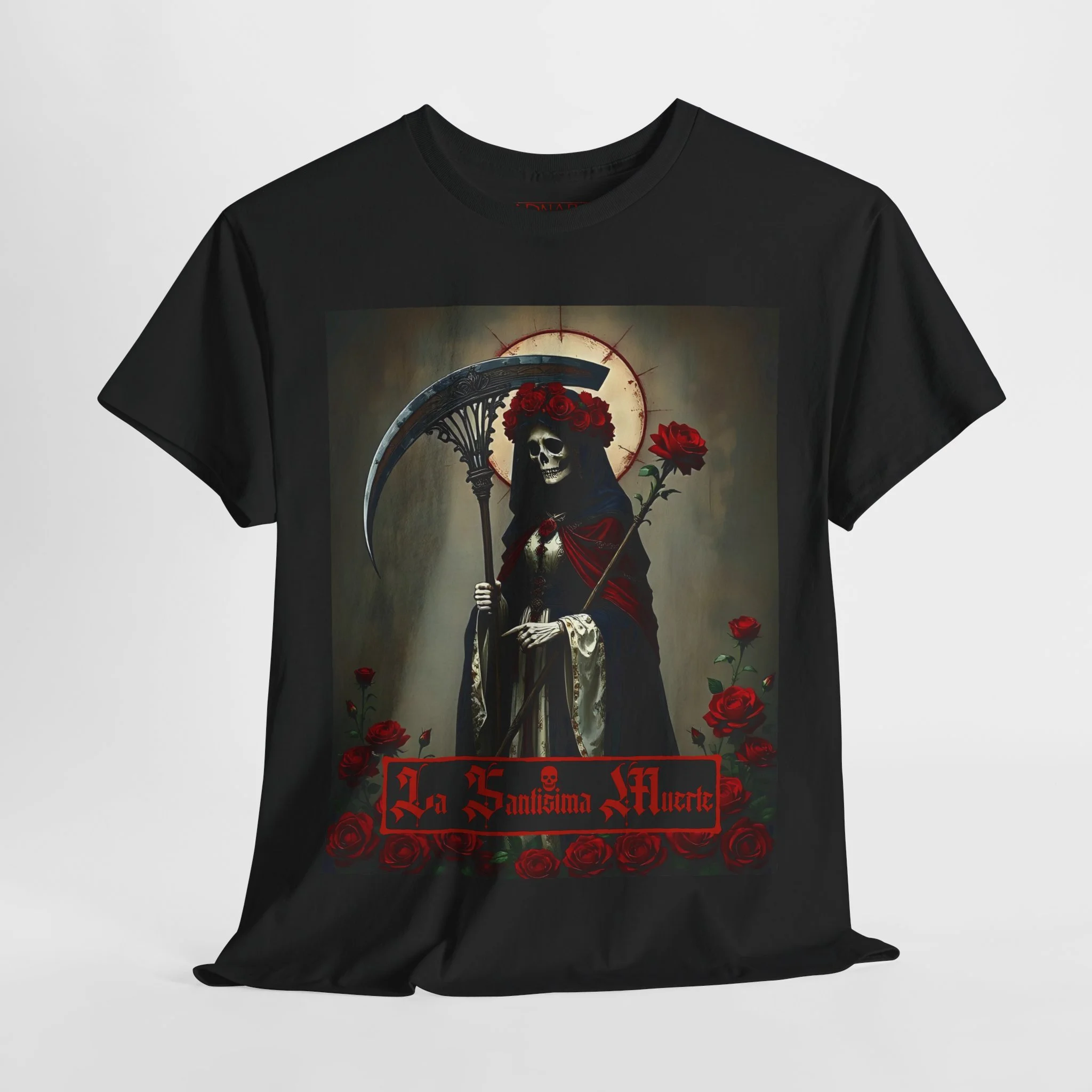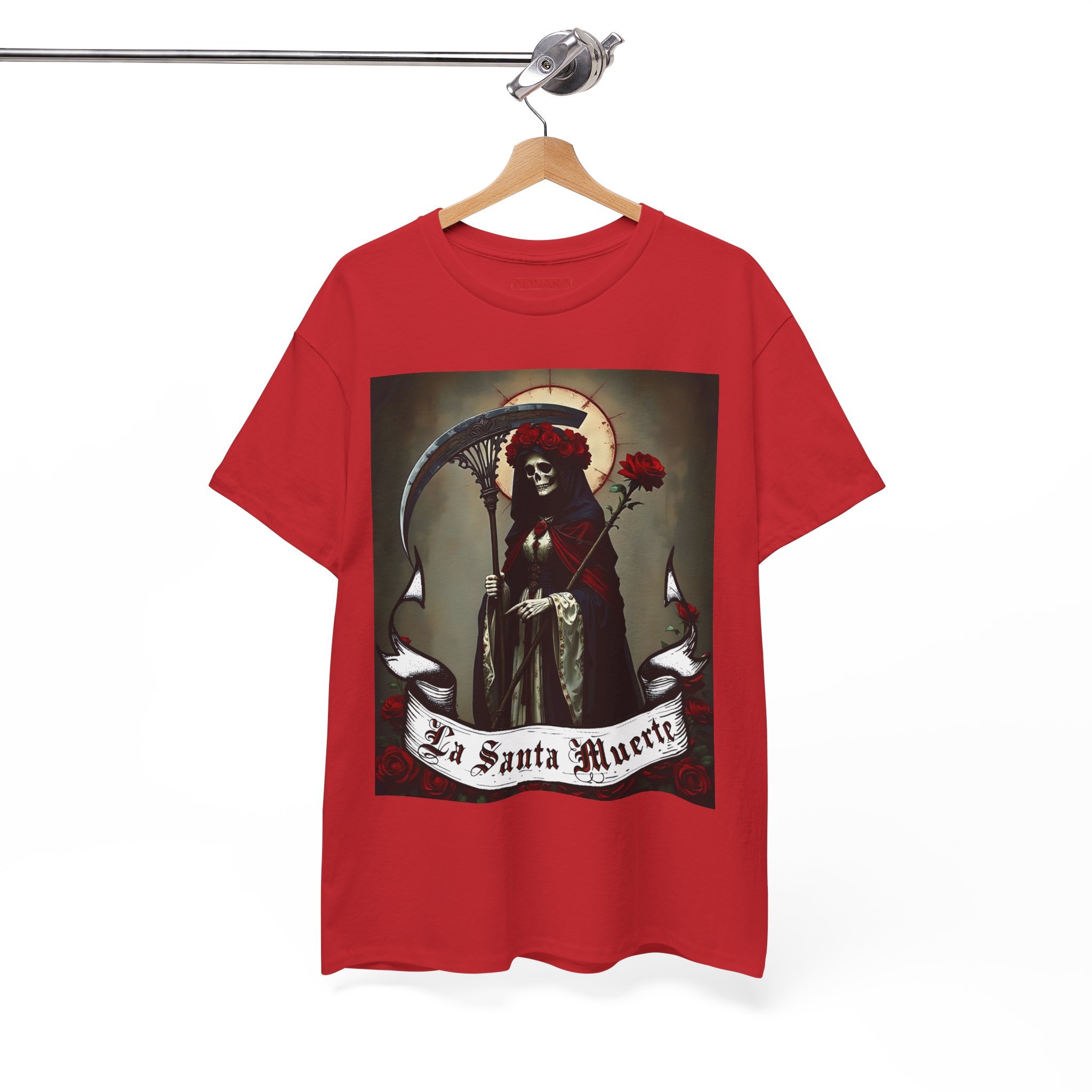 Te presentamos la prenda esencial para devotos, buscadores espirituales y creyentes en los misterios de la vida y la muerte. Nuestra Playera Unisex de Algodón Pesado de La Santa Muerte es más que una camisa – es una declaración de fe, protección y poder que llevas contigo a donde vayas.