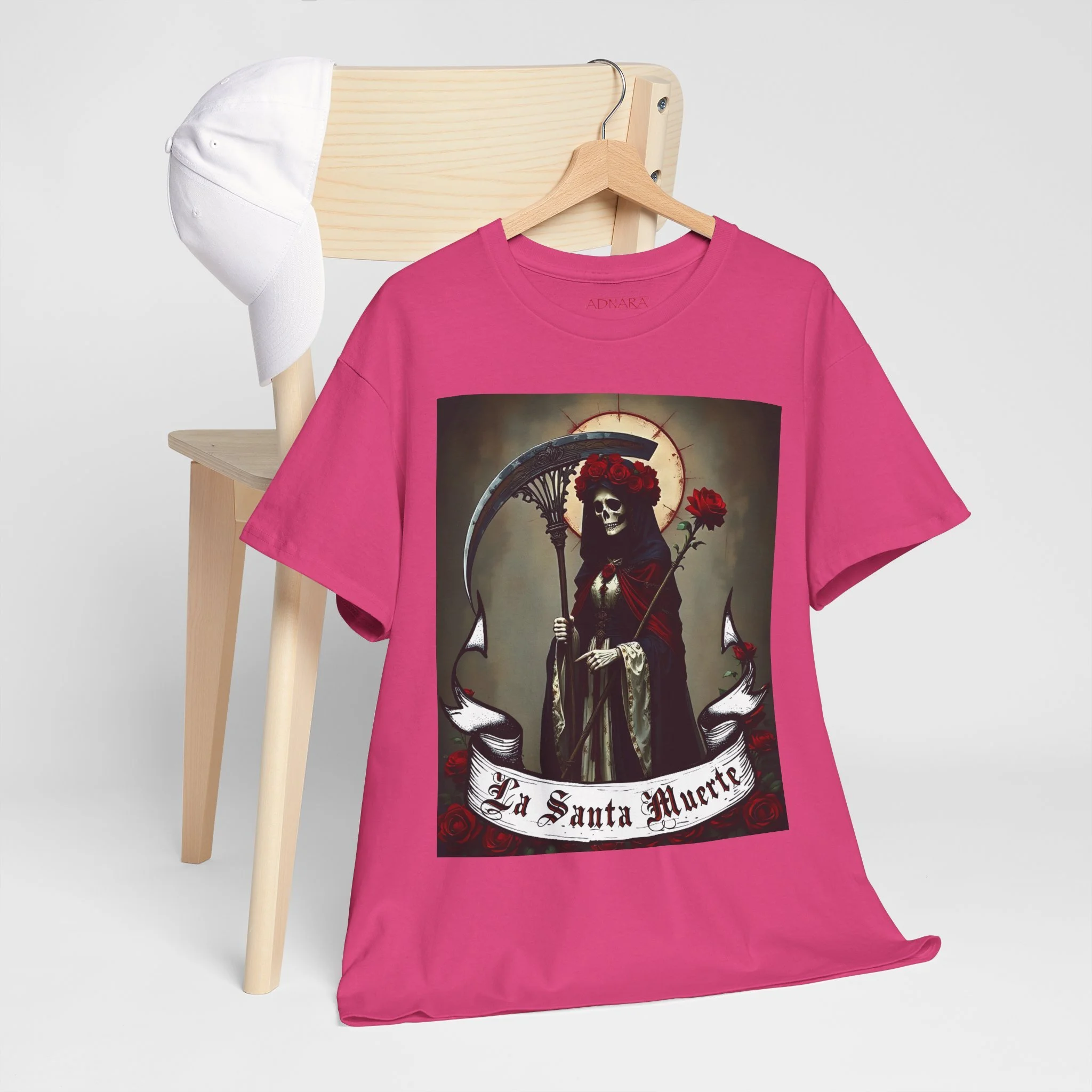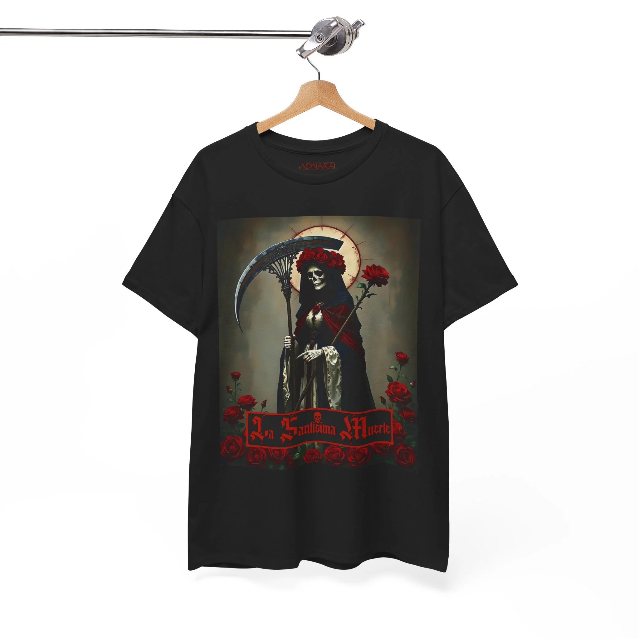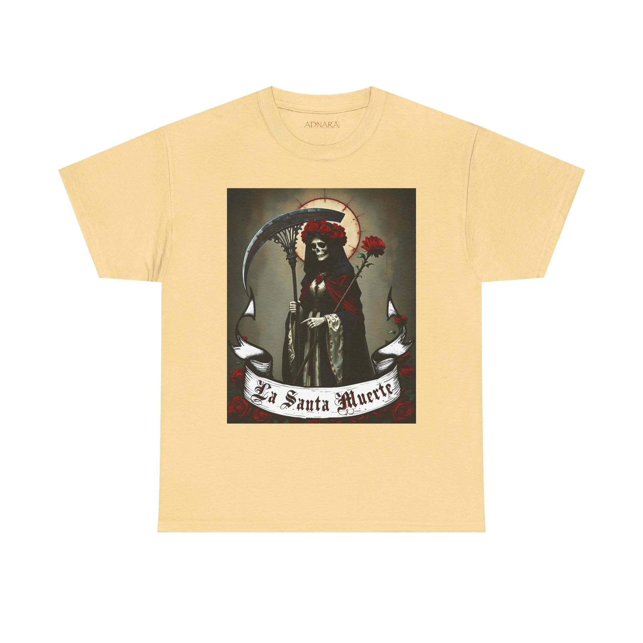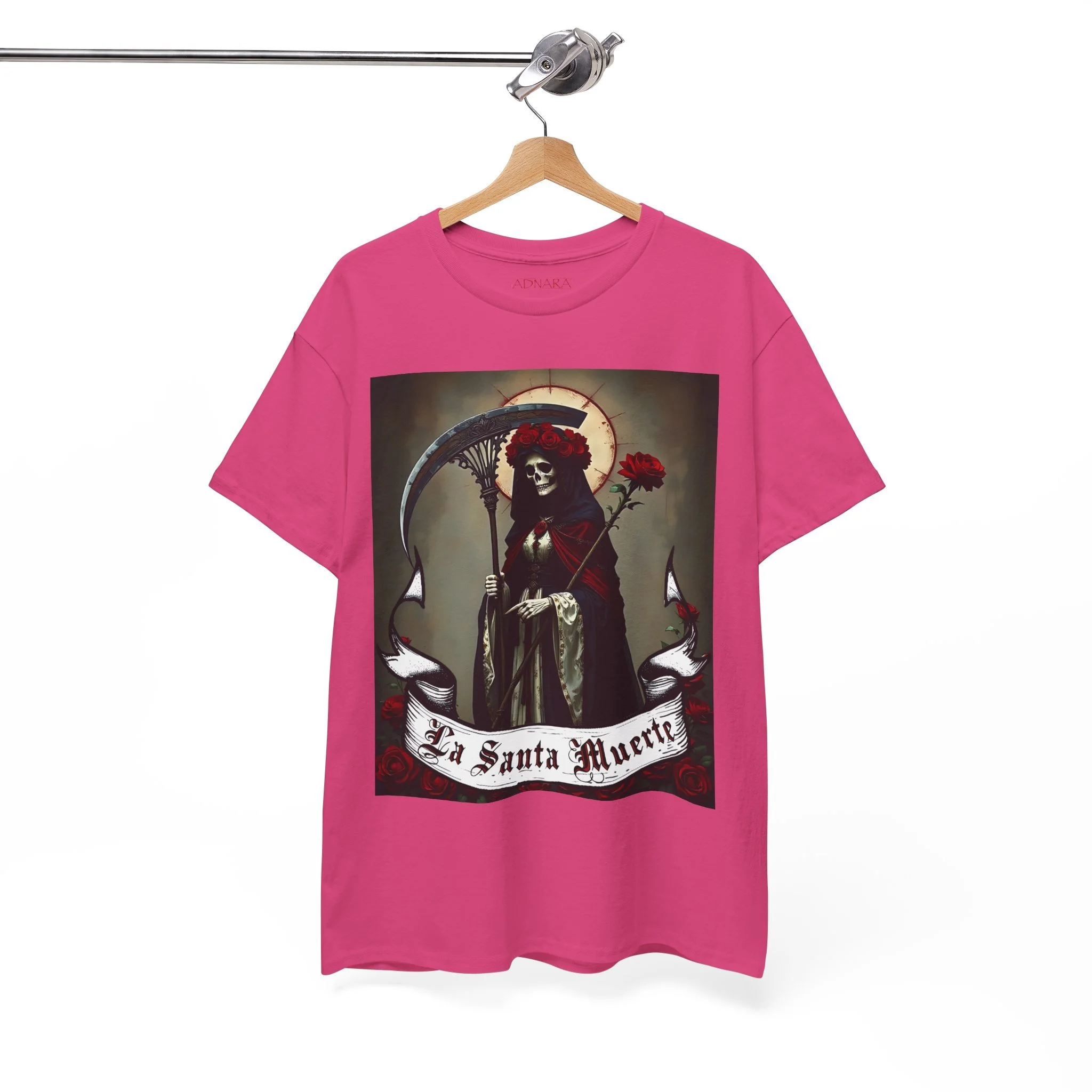 Te presentamos la prenda esencial para devotos, buscadores espirituales y creyentes en los misterios de la vida y la muerte. Nuestra Playera Unisex de Algodón Pesado de La Santa Muerte es más que una camisa – es una declaración de fe, protección y poder que llevas contigo a donde vayas.