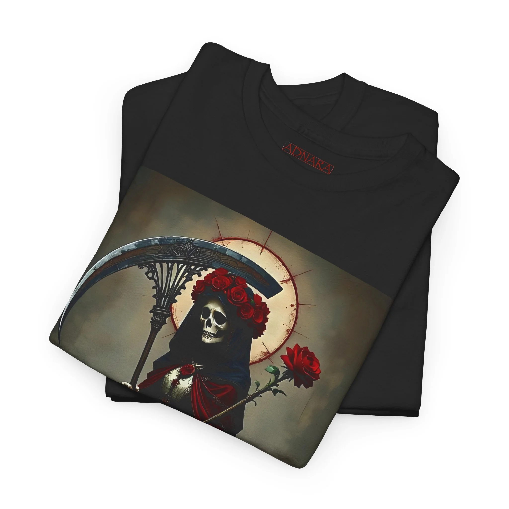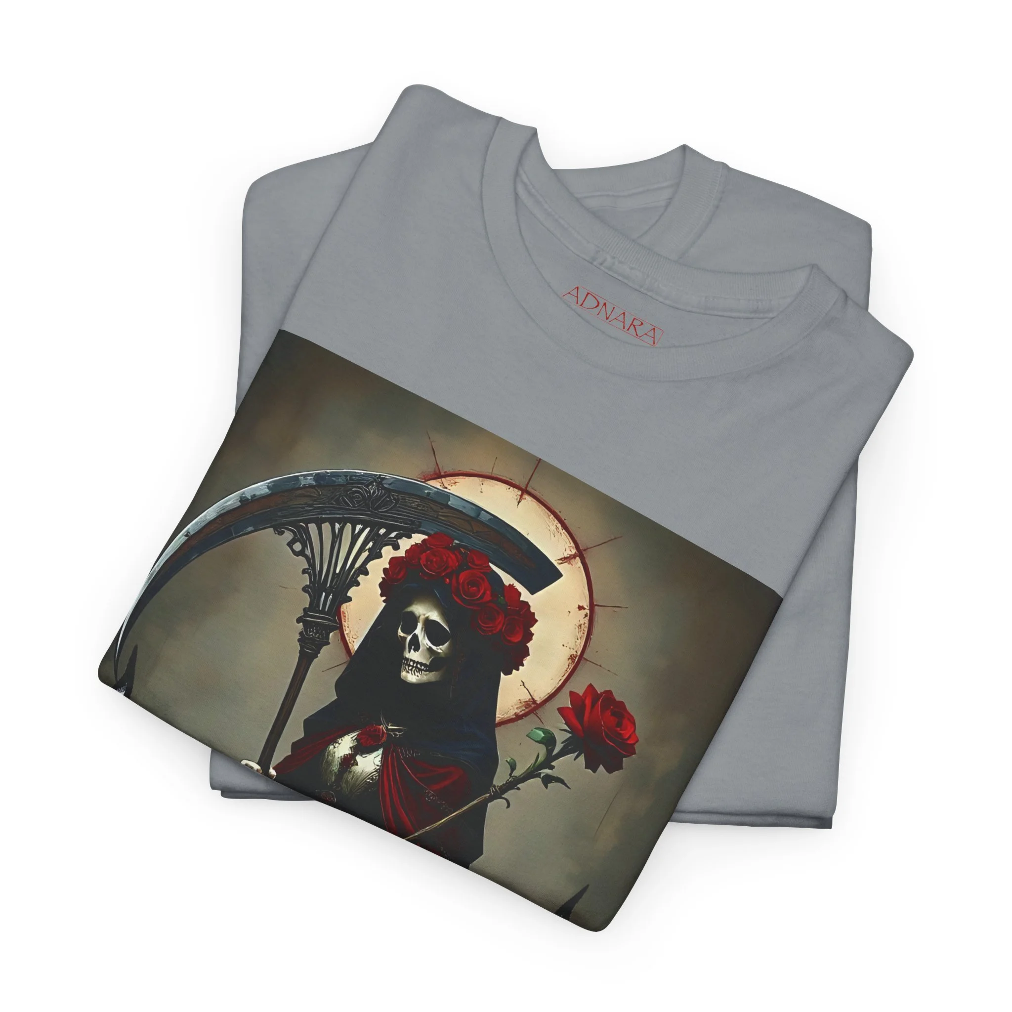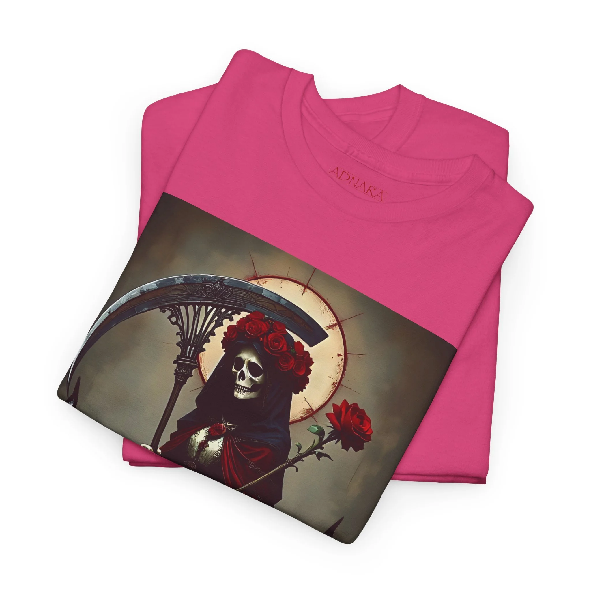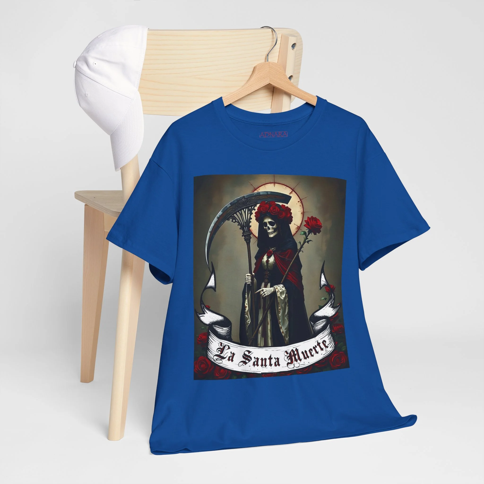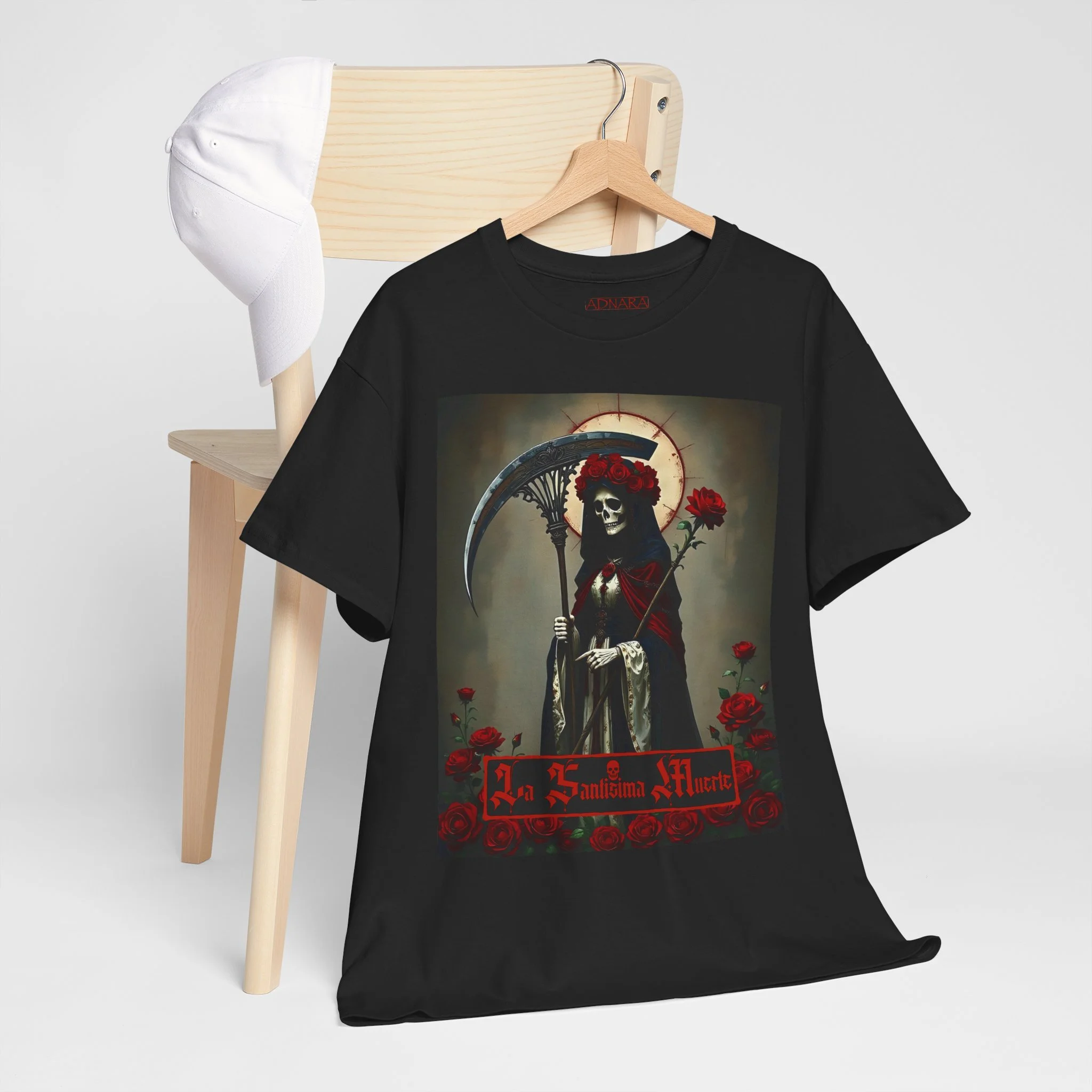 Te presentamos la prenda esencial para devotos, buscadores espirituales y creyentes en los misterios de la vida y la muerte. Nuestra Playera Unisex de Algodón Pesado de La Santa Muerte es más que una camisa – es una declaración de fe, protección y poder que llevas contigo a donde vayas.