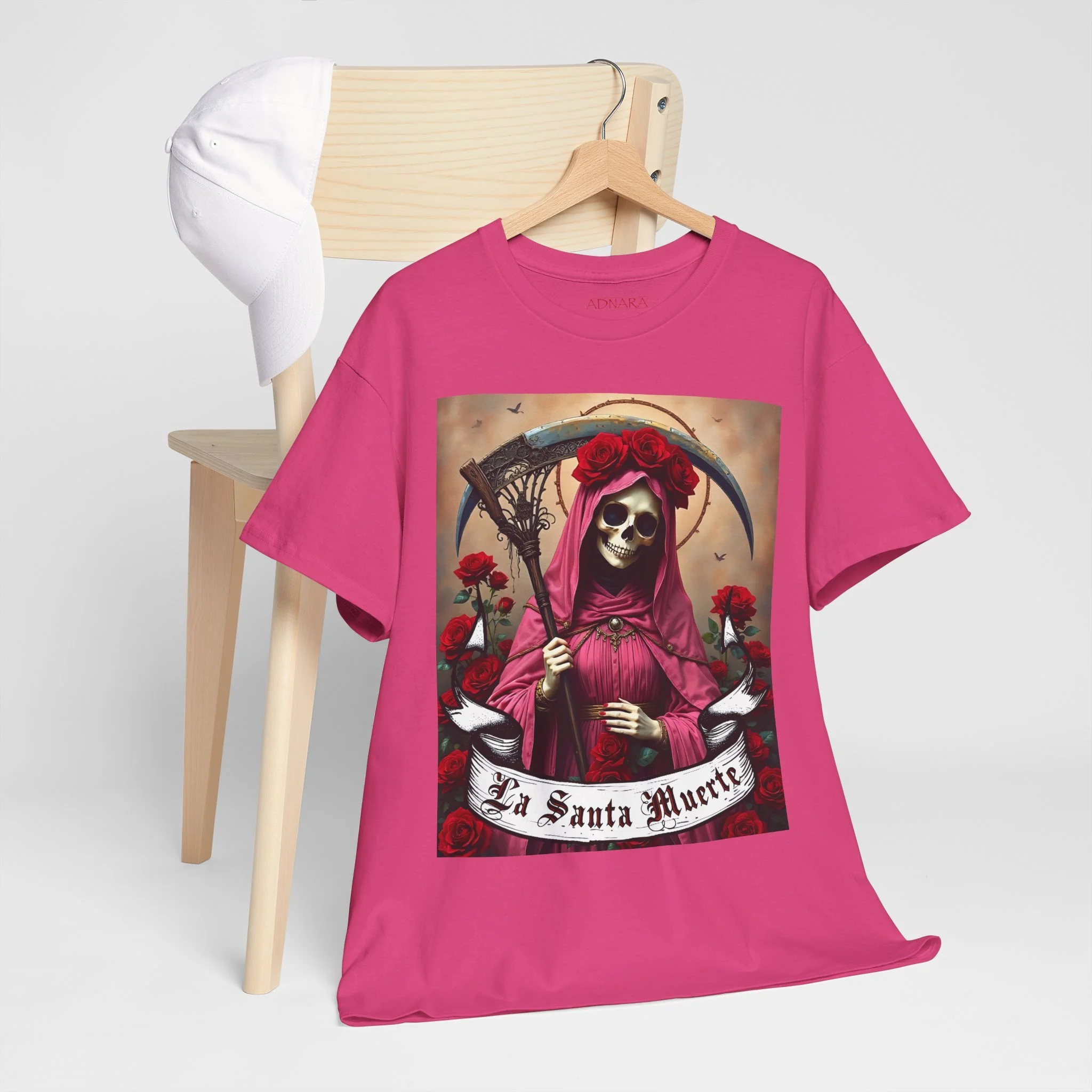 Introducing the ultimate wardrobe staple for devotees, spiritual seekers, and believers in the mysteries of life and death. Our La Santa Muerte Unisex Heavy Cotton Tee is more than just a shirt – it’s a statement of faith, protection, and power that you carry wherever you go.