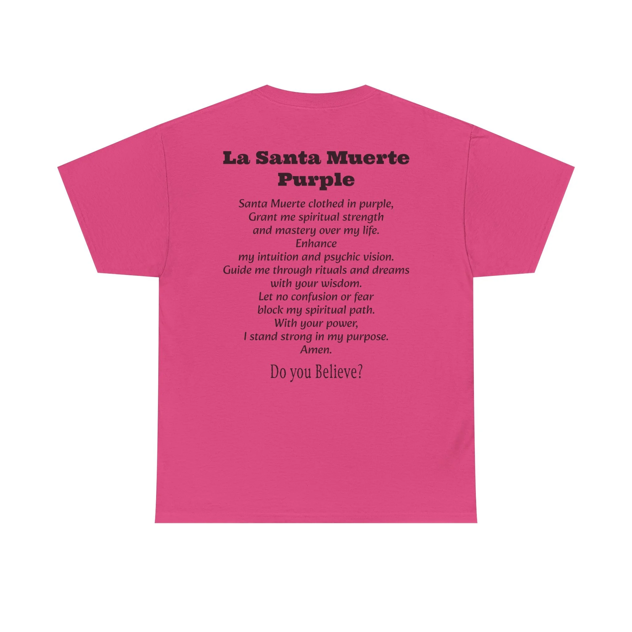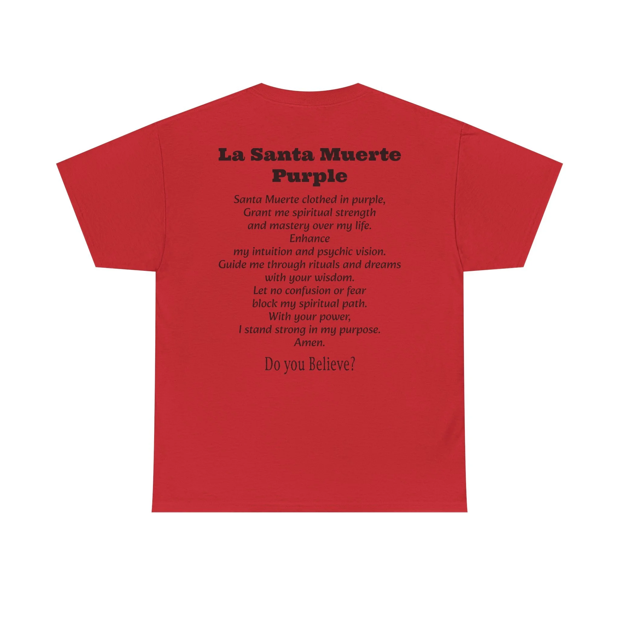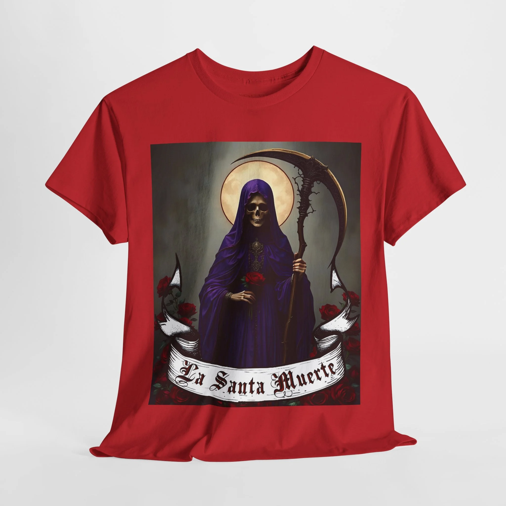 Introducing the ultimate wardrobe staple for devotees, spiritual seekers, and believers in the mysteries of life and death. Our La Santa Muerte Unisex Heavy Cotton Tee is more than just a shirt – it’s a statement of faith, protection, and power that you carry wherever you go.