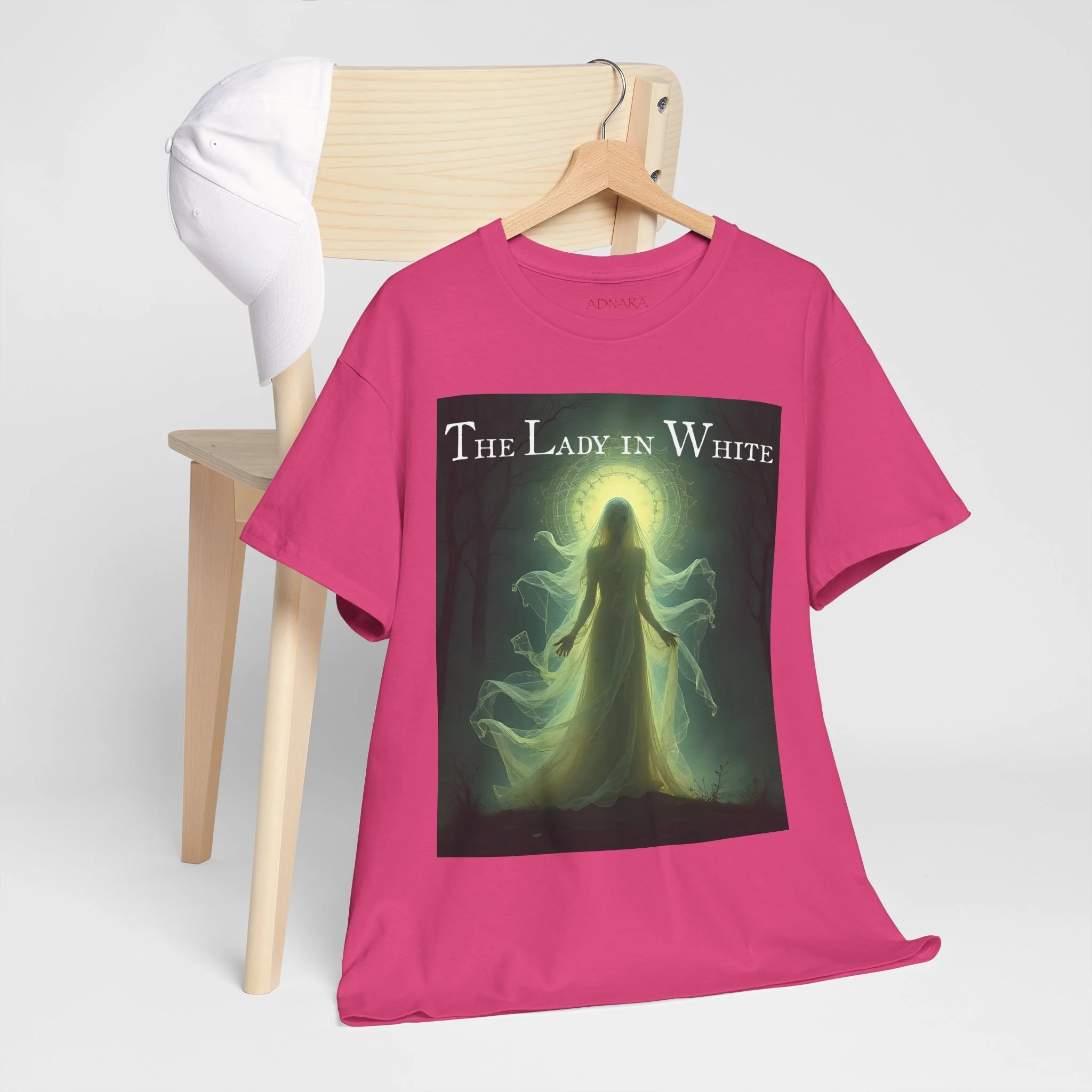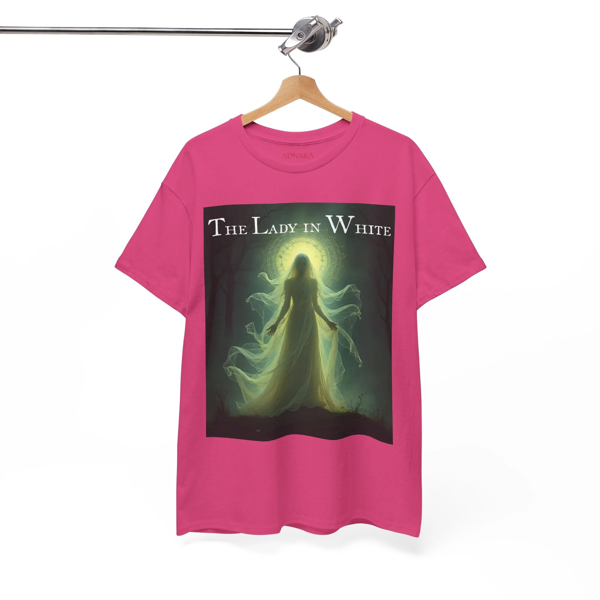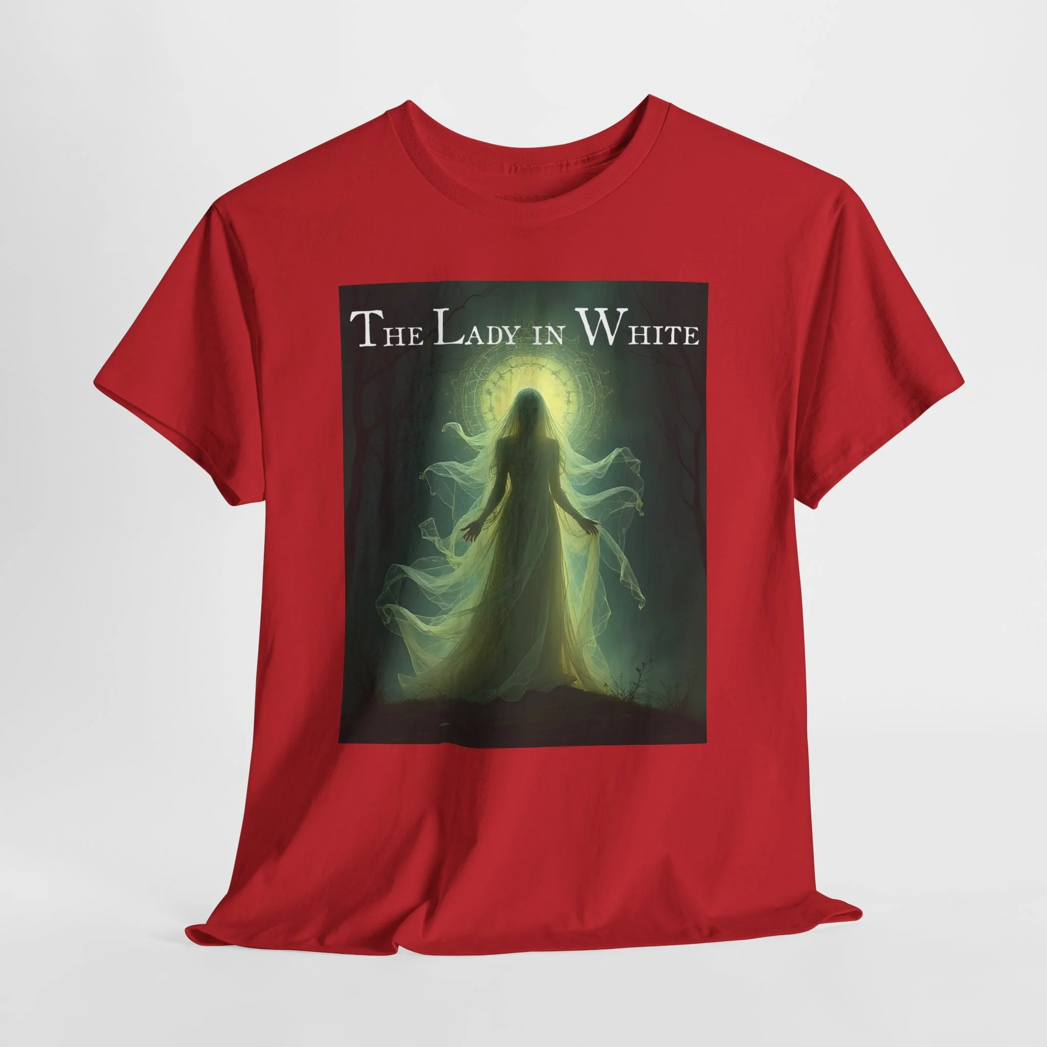 This t-shirt isn’t just clothing — it’s a piece of haunted history. The Lady in White has appeared in countless towns, legends, and ghost stories, representing mystery, sorrow, and grace. Owning this piece is like carrying a part of the supernatural — a beautiful reminder that some stories never fade. Whether you’re a believer in the paranormal, a collector of ghostly lore, or just love the aesthetic of the unknown, this shirt embodies that timeless allure.