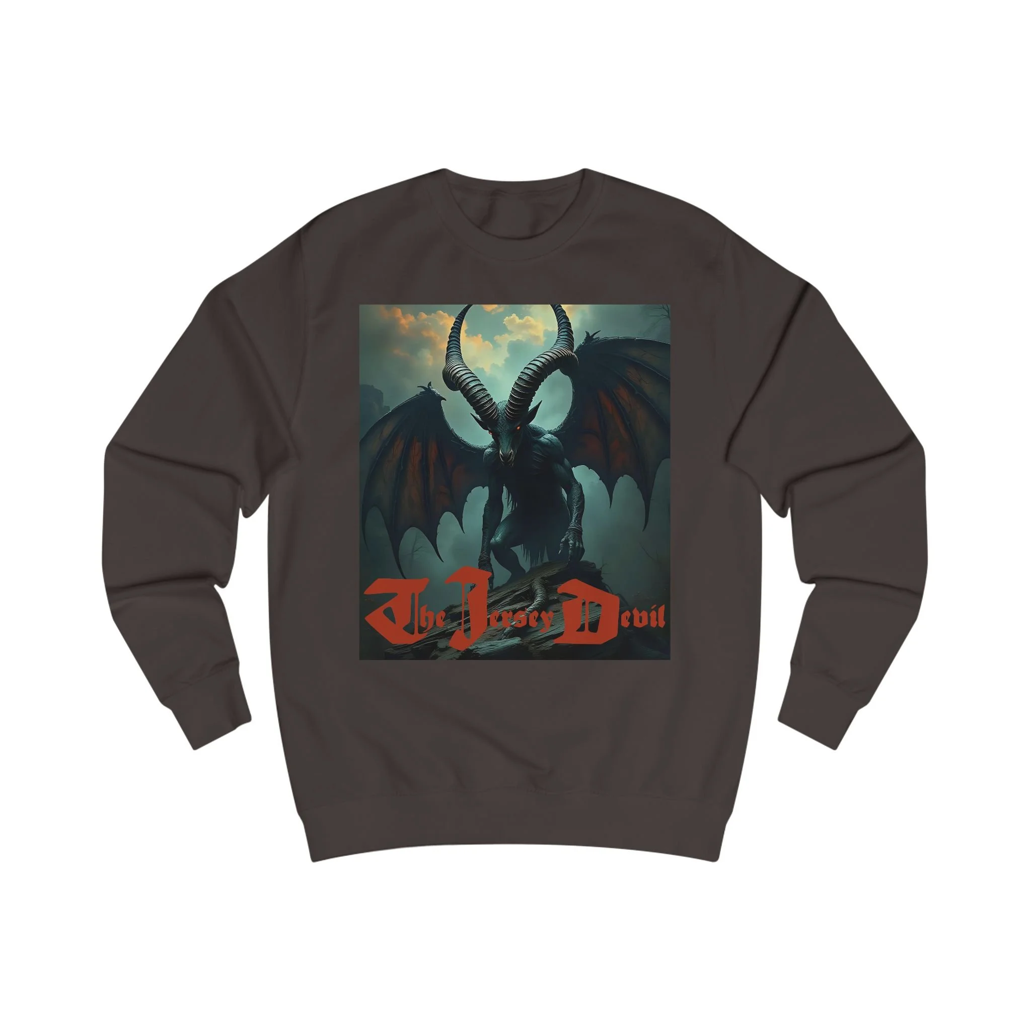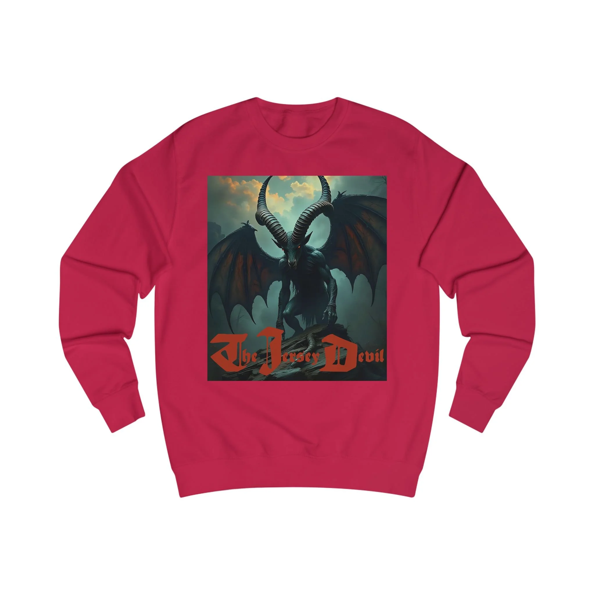 In the dark heart of New Jersey’s Pine Barrens, there are whispers of something more sinister than shadows. Hooves pound against the forest floor, wings cut through the night sky, and an unearthly cry sends chills through even the bravest souls. For centuries, the legend of the Jersey Devil has terrified locals and fascinated believers across the world—and now, it comes to life in our Jersey Devil Heavy Sweatshirt.